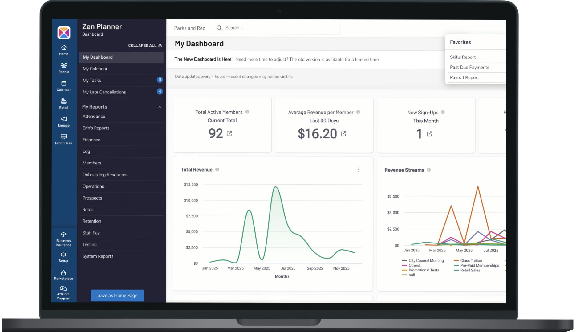 With the Daxko Zen Planner’s gym management software, you can create saved reports showing: